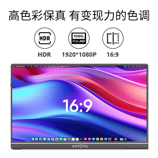 这款ARZOPA便携显示器非常适合在外办公或娱乐,重量仅为0.77kg,放在背包里完全不占空间。尽管屏幕只有16.1英寸,但显示效果非常出色,色彩鲜明,画面细节丰富,HDR10技术让动态画面更生动,适合拍视频、修图和观看电影。